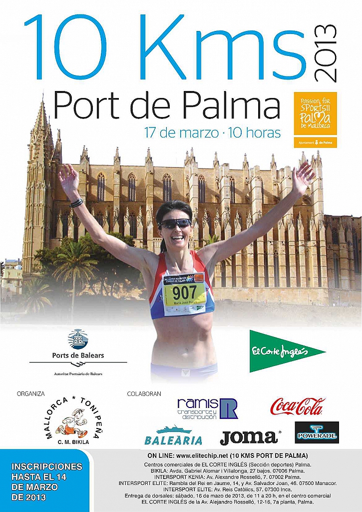 ENTREGA DE DORSALES: Sábado, 16 de marzo de 2013, de 11 a 20 h, en el centro comercial EL CORTE INFGLÉS de la Av. Alejandro Rosselló, 12-16 7ª Palnta, Palma