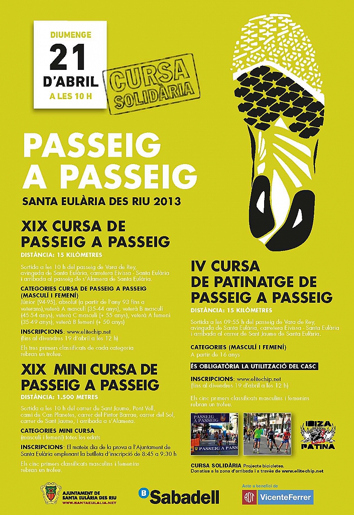 El ayuntamiento de Santa Eularia organiza la Cursa de Passeig a Passeig, carrera en ruta sobre asfalto a la que tendrán acceso todas las personas que lo deseen , con o sin licencia federativa.