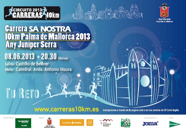 La Real Federación Española de Atletismo con  la colaboración de la Federació d´ Atletisme de les Illes Balears y el Institut Municipal d´ Esports del Ajuntament de Palma de Mallorca, organiza la Carrera Sa Nostra  10km Palma de Mallorca 2013 – “Any Juníper Serra”, que tendrá lugar en Palma el 8 de junio a las 20:30 horas de la tarde  con un recorrido de 10 km, homologados por la Real Federación Española de Atletismo.