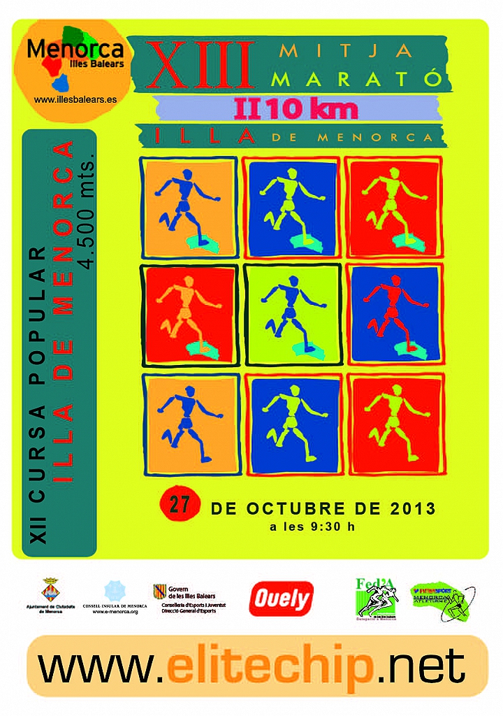 Art. 1. Organización - El Club Intersport Menorca Atletisme, la Delegación en Menorca de la FAIB, la Consejería de deportes del Consell Insular de Menorca, el Ayuntamiento de Ciutadella de Menorca, organizan el II 10 km Illa de Menorca y la XIII Medio Maratón "Illa de Menorca", a celebrar el próximo día 27-Octubre-2013 a las 09:30 horas.