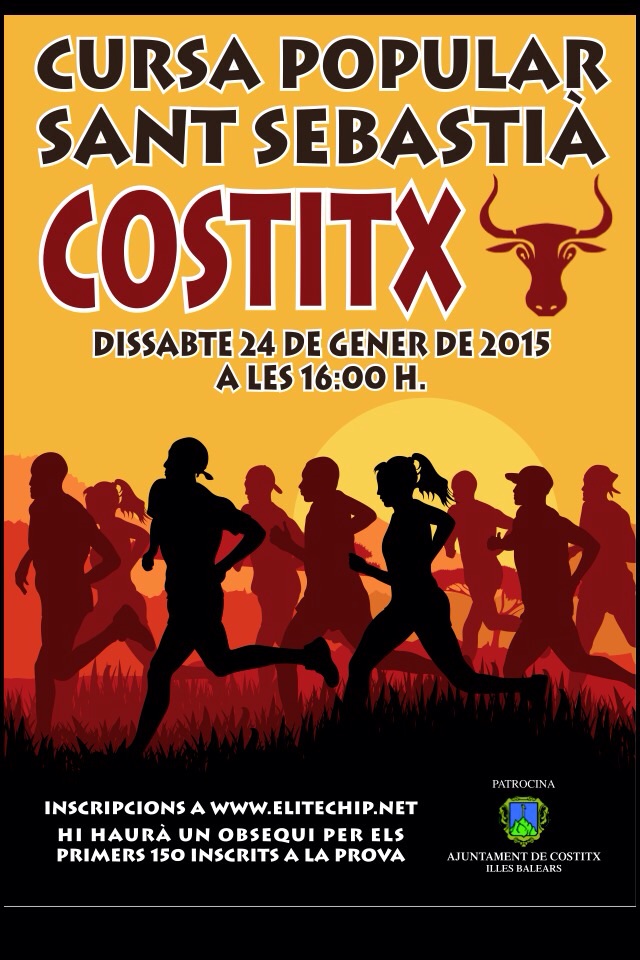 1. El dia 24 de gener de 2015, a les 16:00 h es donarà la sortida de la Cursa Popular de Costitx 2015, inclòs dins el programa de Festes de Sant Sebastià i Sant Antoni de la vila. La prova es oberta a qualsevol persona major de 16 anys que accepti el present reglament. Aquesta prova està organitzada per Ajuntament de Costitx.