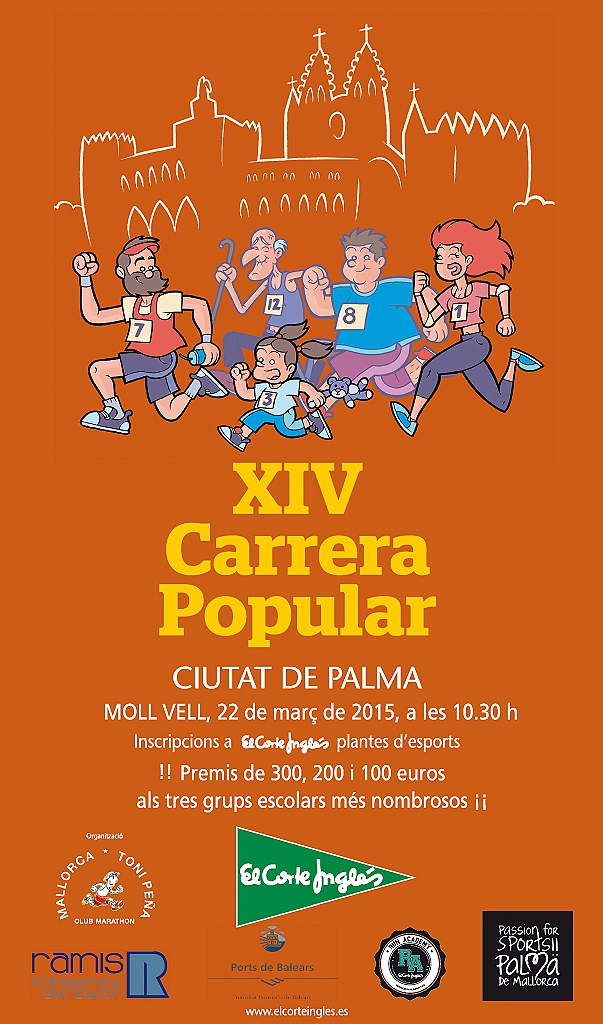 ENTREGA DE DORSALES: La entrega de dorsales se realizará el 21 de Marzo de 2015, de 11.00h a 20.00h, en el centro comercial "EL CORTE INGLES" de la Avda. Alejandro Rosello, 12 en la 7ª planta (Palma de Mallorca)