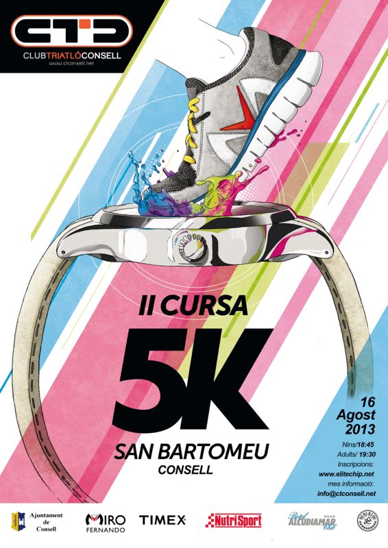 Art. 1.- Organització - El Club CT Consell i l'Ajuntament de Consell, organitzen la Cursa popular “II 5km Sant Bartomeu Consell” que tindrà lloc dia 16 d'agost de 2013, a les 18:45 sortida dels nins i a les 19.30 h sortida del adults.