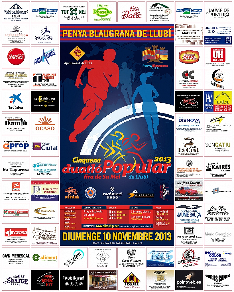 1. El dia 10 de novembre de 2013, a les 10:30 h es donarà la sortida de la V Duatló Popular Fira de Sa Mel de Llubí. La prova es oberta a qualsevol persona major de 18 anys que accepti el present reglament. Aquesta prova està organitzada per la Penya Blaugrana de Llubí i la col.laboració del club BTT Sineu.