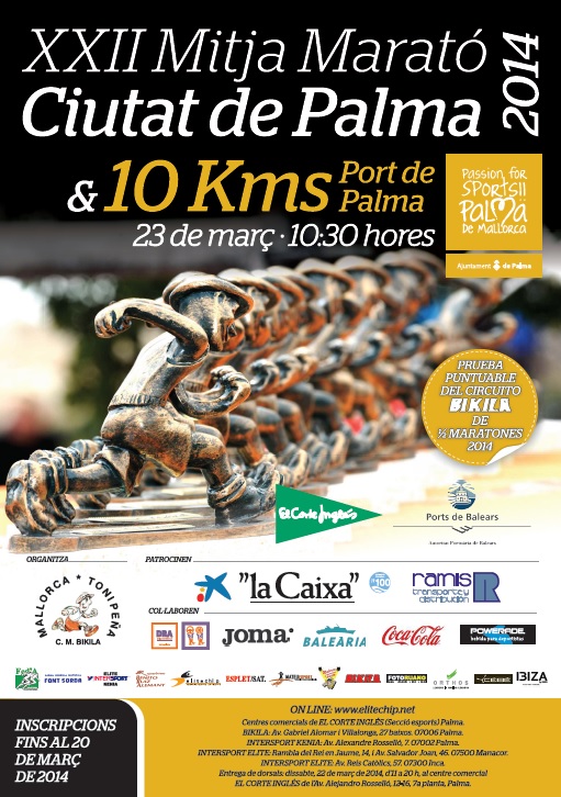 ENTREGA DE DORSALES: SÁBADO 22 DE MARZO DE 2014, DE 11.00 A 20.00 HORAS, EN EL CENTRO COMERCIAL DEL "CORTE INGLÉS" DE LA AVDA. ALEJANDRO ROSSELLÓ, 12 - 7.ª PLANTA DE PALMA DE MALLORCA