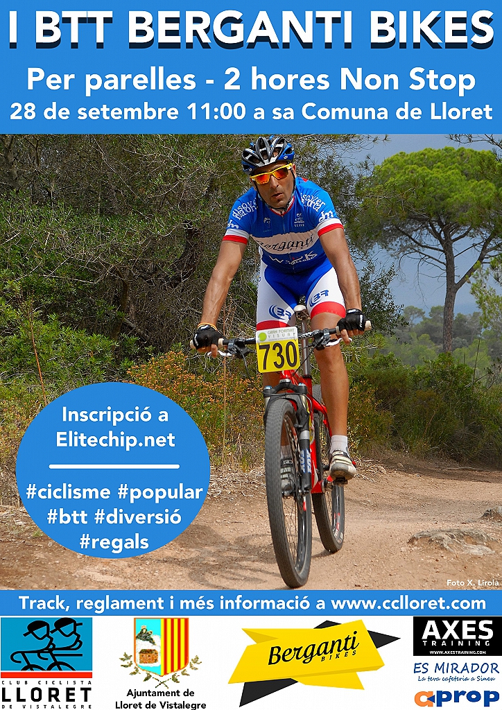 El Club Ciclista Lloret de Vistalegre i l’Ajuntament de Lloret de Vistalegre organitzen la I BTT Berganti Bikes el proper diumenge 28 de setembre a les 11:00 a sa Comuna de Lloret de Vistalegre (caseta dels caçadors). Es tracte d’una cursa de BTT de caire popular per parelles, que consisteix en donar el nombre màxim de voltes al recorregut durant un temps de dues hores.