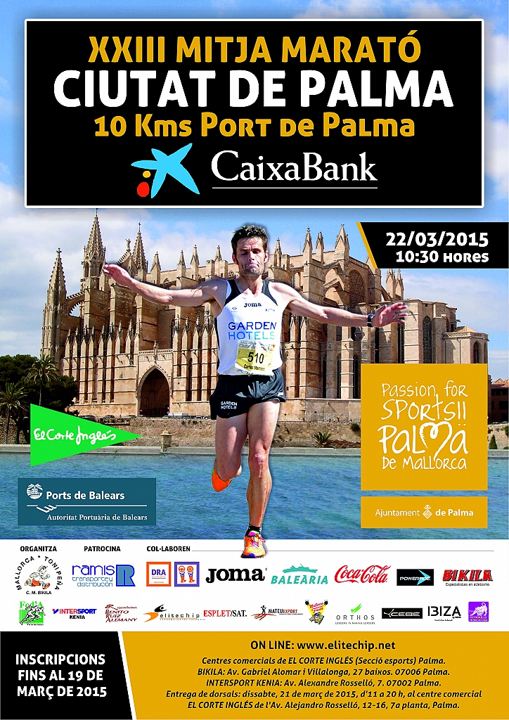 ENTREGA DE DORSALES: La entrega de dorsales se realizará el 21 de Marzo de 2015, de 11.00h a 20.00h, en el centro comercial "EL CORTE INGLES" de la Avda. Alejandro Rosello, 12 en la 7ª planta (Palma de Mallorca)