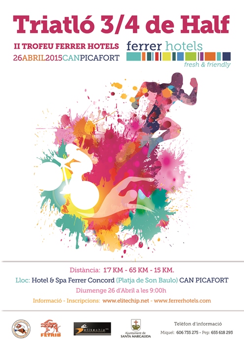 El triatlón ¾ de Half Ferrer-hotels de Can Picafort se disputará el Domingo 26 de abril de 2015. La salida se dará a las 9:00 h para la Cat. Individual y a las 09:15 para Cat. de equipos pudiendo la organización modificar los horarios de salida.