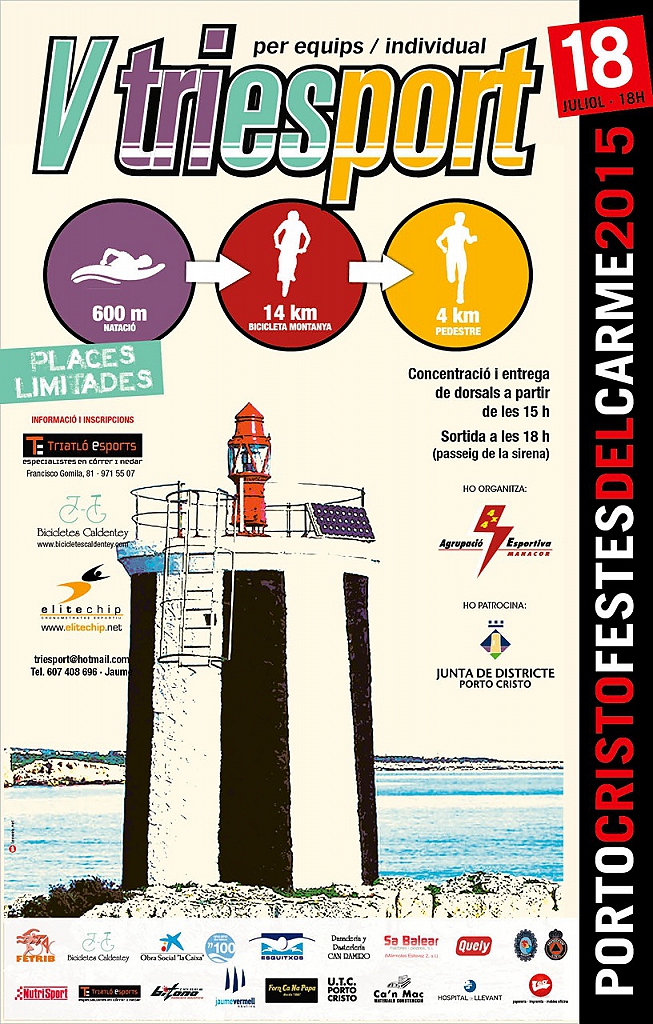 1-La AGRUPACIÓ ESPORTIVA MANACOR tiene previsto organizar el próximo dia 18 de julio 2015,a las 18:00 horas,el "VII TRIESPORT PORTO CRISTO 2015", prueba que comprende las siguientes modalidades y distancias: