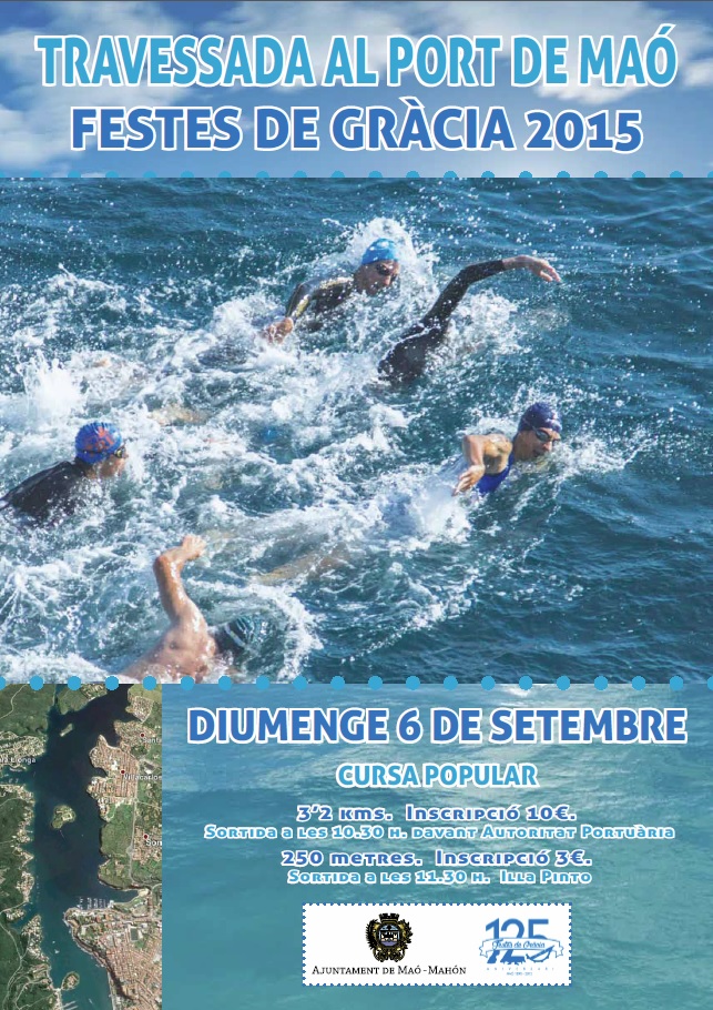 Este año coincidiendo con el 125 aniversario de las “Festes de Gràcia” e incluida dentro del programa de fiestas del Ayuntamiento de Mahón, el Club Natación de Maó organizará la ya tradicional travesía a nado del puerto de Mahón. Este año con la novedad de incluir en el programa, la realizada los tres pasados años dentro del calendario del “Circuit entre Illes” de 3.400 metros.