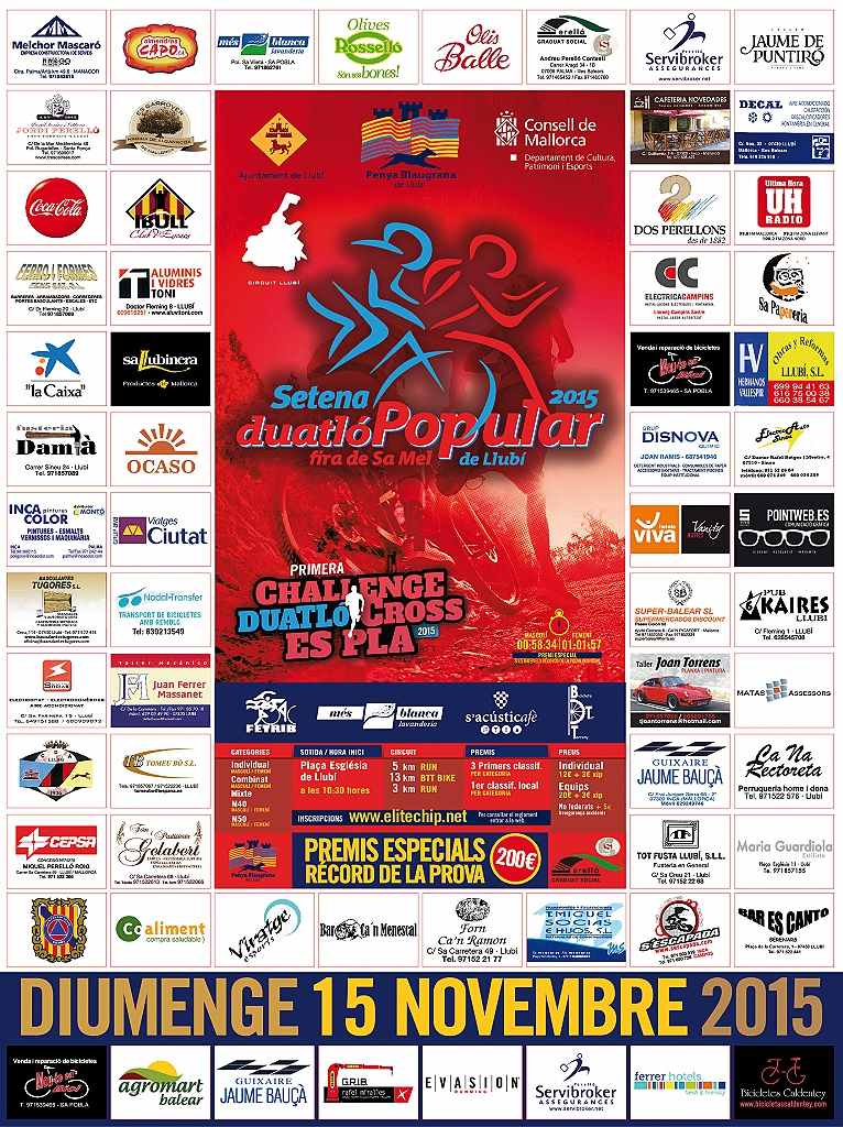 1. El dia 15 de novembre de 2015, a les 10:30 h es donarà la sortida de la VII Duatló Popular Fira de Sa Mel de Llubí. La prova es oberta a qualsevol persona major de 16 anys que accepti el present reglament. Aquesta prova està organitzada per la Penya Blaugrana de Llubí.