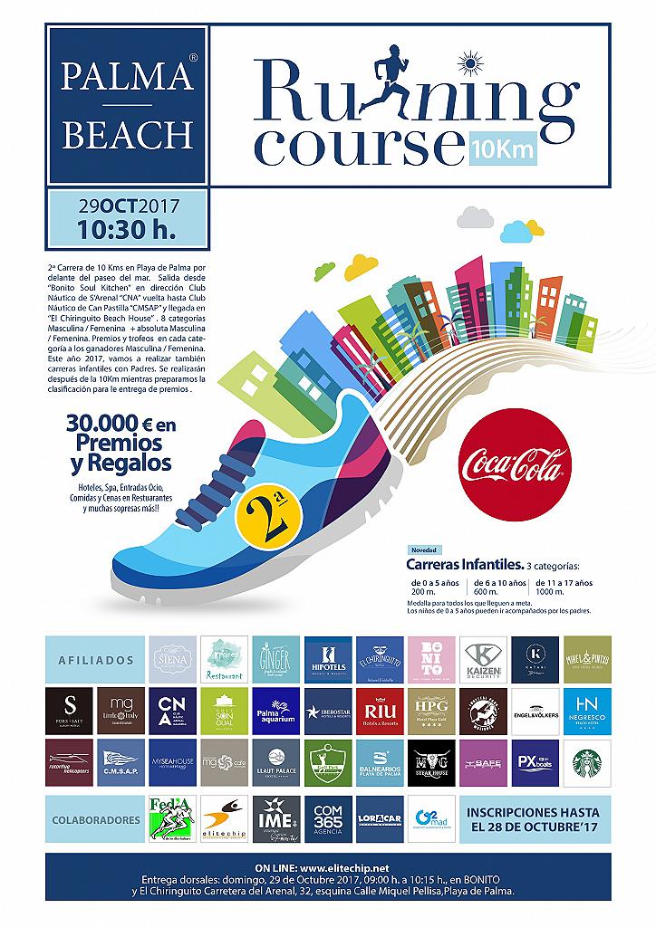 Carrera de 10 Kms en Playa de Palma, por delante del Paseo del Mar.  Salida desde Bonito Soul Kitchen en dirección Club Náutico de SArenal CNA vuelta hasta Club Marítimo San Antonio de la Playa CMSAP y llegada en El Chiringuito Beach House . 8 categorías Masculino/Femenina   + absoluta Masculina / Femenina. Premios y trofeos  en cada categoría a los ganadores Masculino / Femenina.