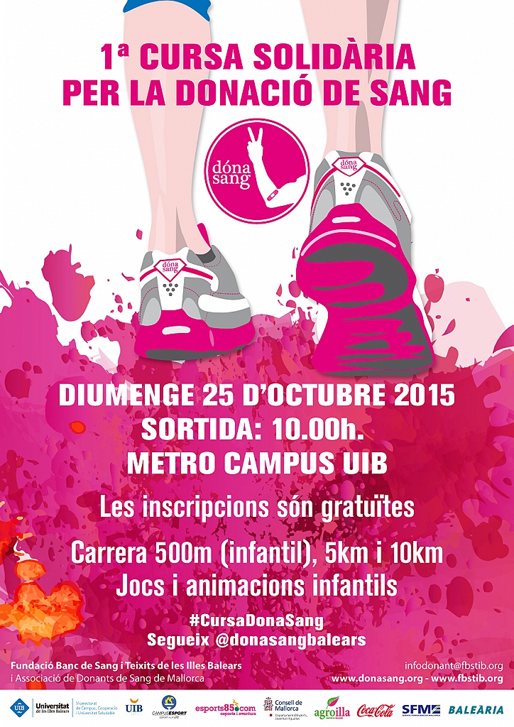 La entrega de dorsales se efectuará en la sede de la FBSTIB, c/ Rosselló i Caçador, 20 en Palma (http://www.donasang.org/on-puc-donar/punts-fixes/1/palma-mallorca-banc-de-sang) el sábado 24 de octubre de 2015 en horario de 16:00 a 20:30