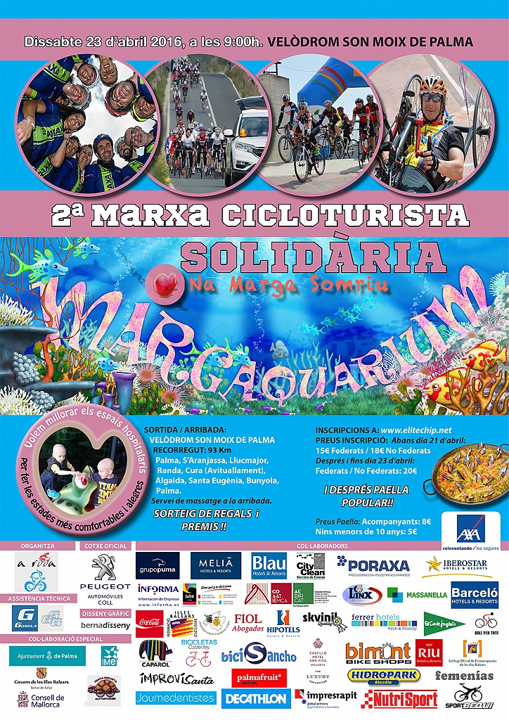 La marcha cicloturista solidaria “Na Marga Somriu” es una prueba no competitiva creada para disfrutar de los espectaculares parajes de la zona sur y centro de la isla de Mallorca durante una jornada lúdico-deportiva con compañeros y amigos en un formato idóneo y con un final de fiesta en el Velódromo del Polideportivo de Son Moix, con entrega de bolsa obsequio para todos los participantes y sorteo final de numerosos regalos: vales de hotel y equipaciones ciclistas. El principal objetivo de la marcha ciclista “Na Marga Somriu” es contribuir con el dinero recaudado en la participación y los patrocinadores, a la gran labor solidaria de la asociación.