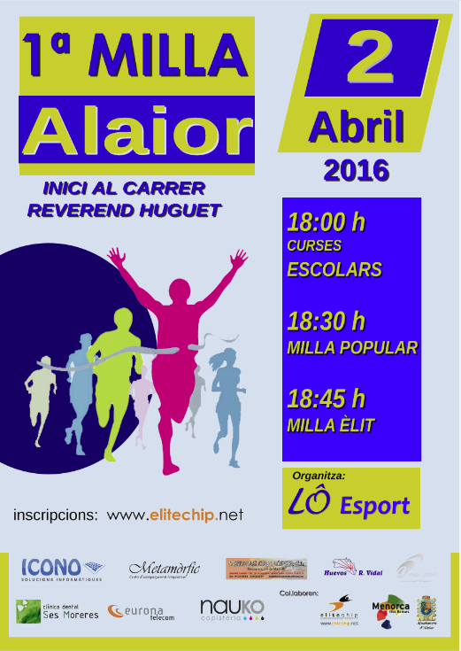 Art 1. El club Alaior Esport con la colaboración del Ayuntamiento de Alaior organizan la 1a edición de la Milla de Alaior 2016,