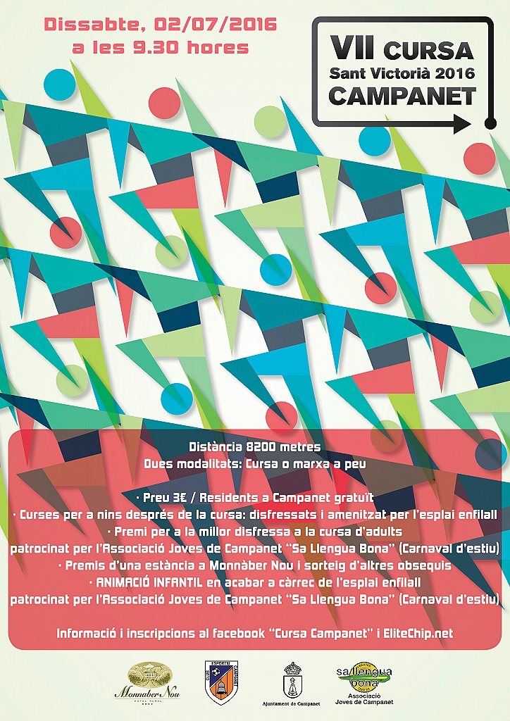 Cursa: Plaça Major de Campanet, a les 9:30 hores de dissabte 2 de juliol de 2016.