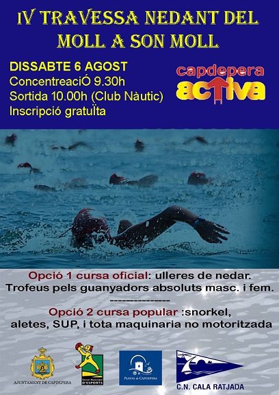 Dissabte 06 d'Agost a les 10:00 h es durà a terme la IV edició de la Travessa Nedant. La trobada es ferà a les 09:30h.