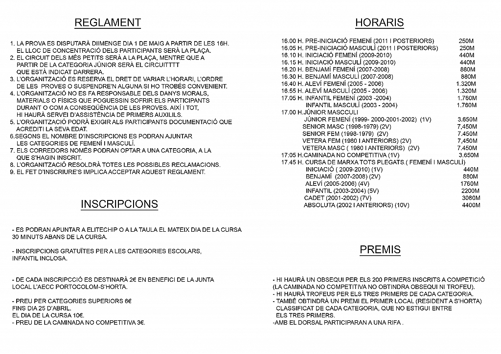INSCRIPCIONS A PARTIR DEL 26 D'ABRIL 10€ (+3€ Lloguer de chip)