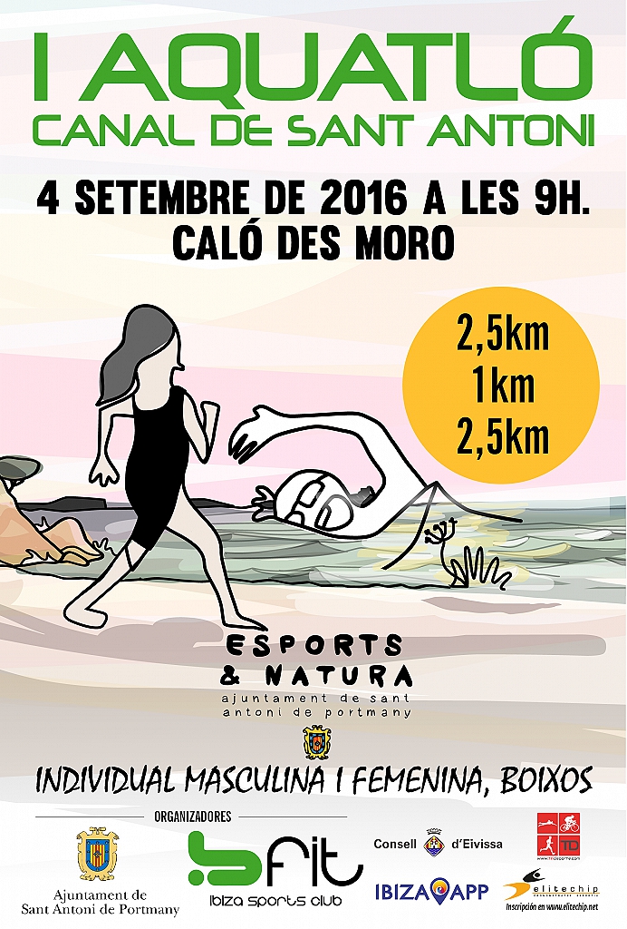 El Acuatlón tendrá lugar en el municipio de Sant Antoni de Portmay (Calo des Moro) el 4 de Septiembre de 2016, realizándose la salida en el mismo paseo marítimo, por el que discurrirá la carrera a pie del 1er y 3er segmentos y el 2º segmento se nadara en el Canal de Nado de Sant Antonio, la salida para la prueba federada y popular se realizara a las 09:00 h y y popular de categorías menores a las 10:30h. La entrega de Trofeos será justo después.
