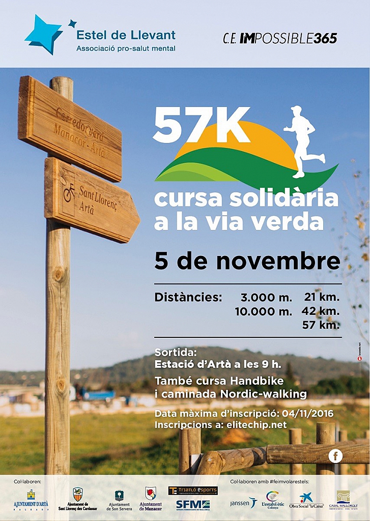 Sortides:   Totes les sortides es faran des de l'estació d'Artà, excepte les dels participants al nordic-walking (no competitiu) que tindran a la seva disposició un bus gratuït  que els acompanyarà a les respectives estacions segons les distàncies que vulguin recórrer:
