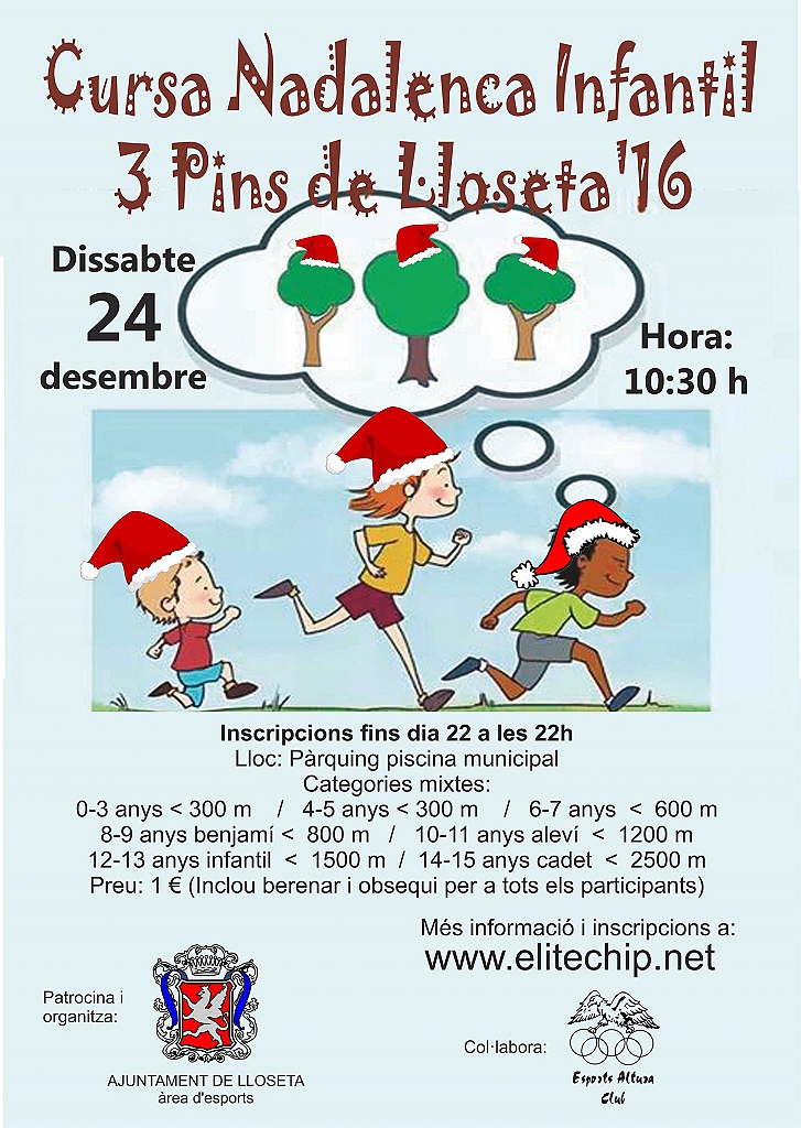 La inscripció es podrà fer mitjançant la pàgina web d'Elitechip www.elitechip.net i fins a quinze minuts abans de començar les curses a la paradeta de control, al pàrquing de la piscina municipal de Lloseta.