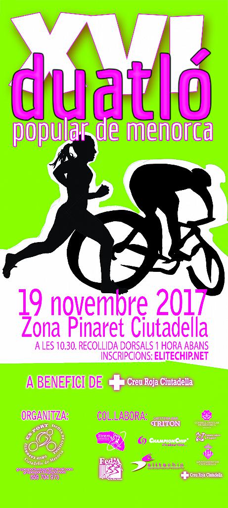 - ORGANITZACIÓ: El Grup Esportiu Es Port organitza la XVIª edició de la Duatló Popular de Menorca, a celebrar el 6 de novembre de 2017, a les 10.30 h.