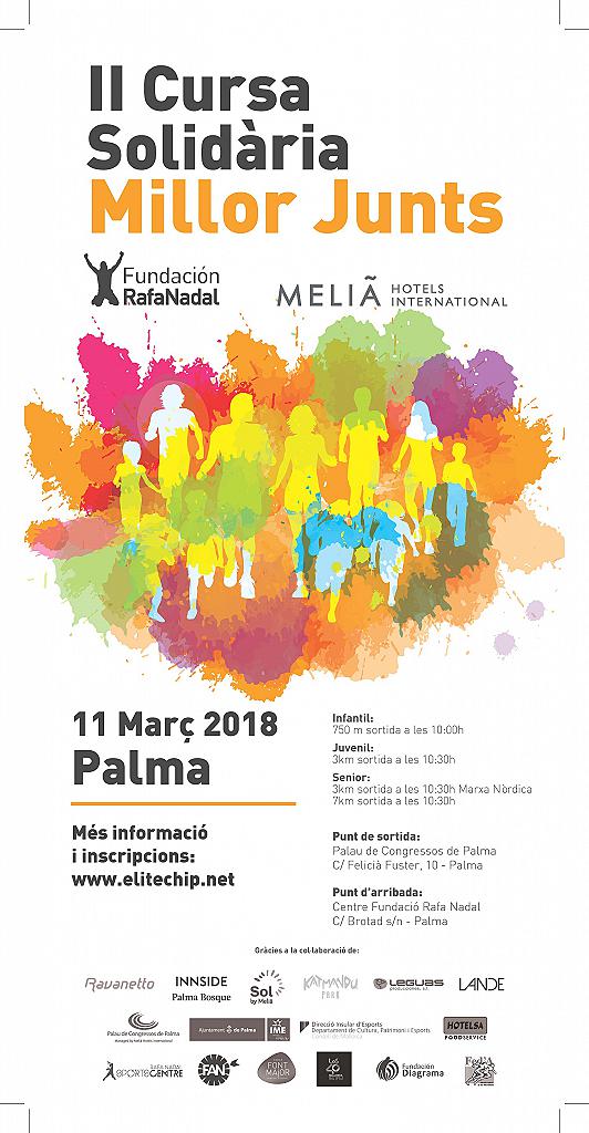 El próximo domingo 11 de marzo de 2018 se celebrará en Palma la segunda edición de la carrera solidaria Millor Junts, organizada por el Centro Fundación Rafa Nadal, en colaboración con Fundación Diagrama y el apoyo de Melià Hotels Internacional, como principal patrocinador.