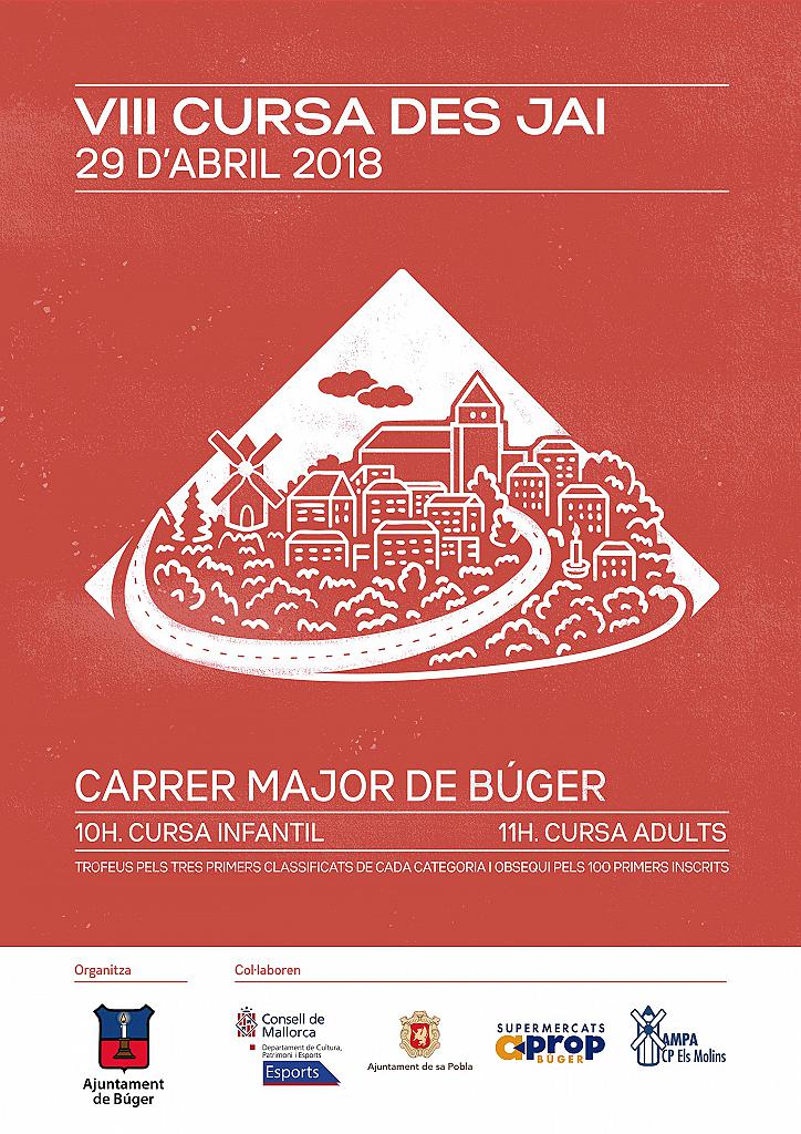 La VIII Cursa Popular des Jai es celebrarà dia 29 d’abril de 2018 amb sortida i arribada al carrer Major de Búger