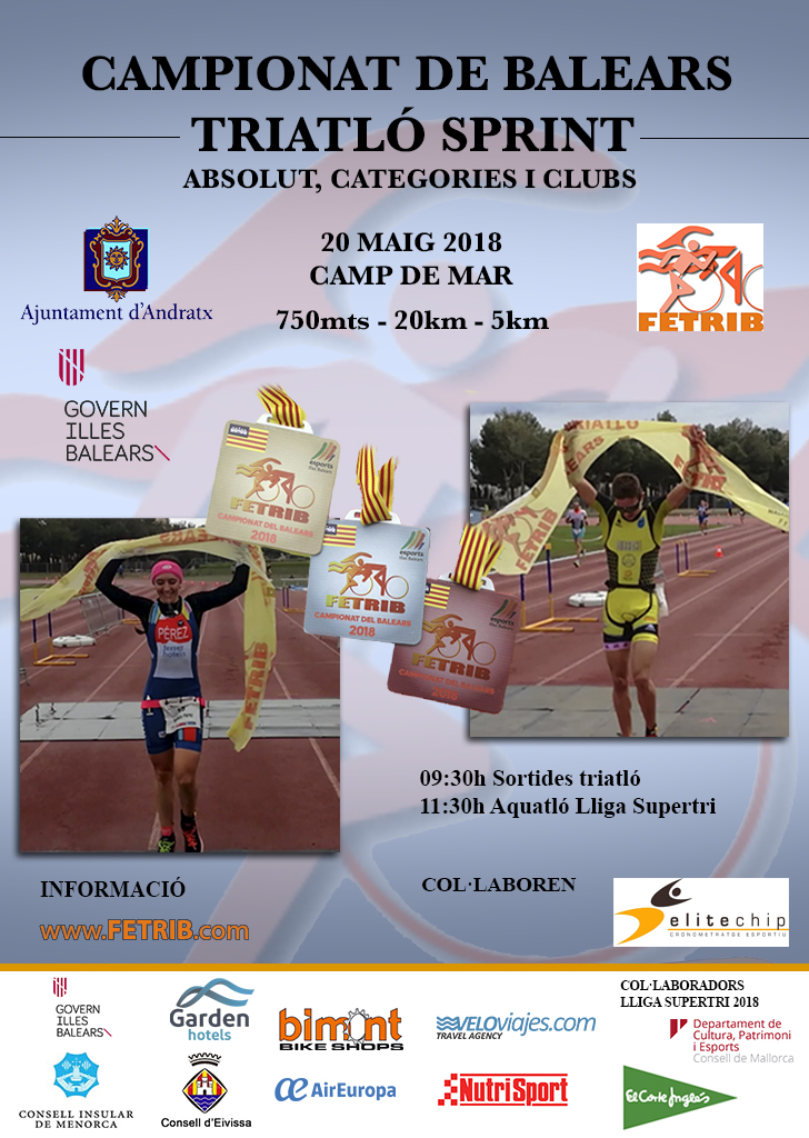 Se otorgarán los títulos de campeonatos de Baleares de TRIATLON 2018 en todas las categorías bajo el reglamento y normativa FETRIB en vigor.