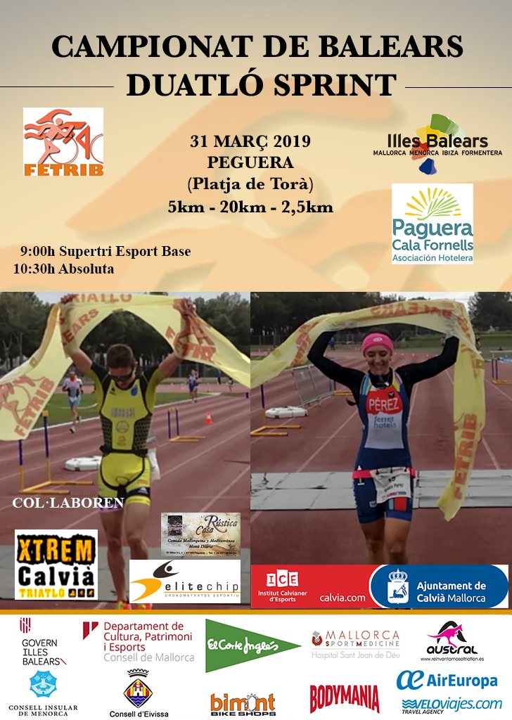 La Federació de Triatló de les Illes Balears organitza el Campionat de Balears de Duatló Sprint.Lloc: Plaça Patja ToràData: 31 de març de 2018Hora: