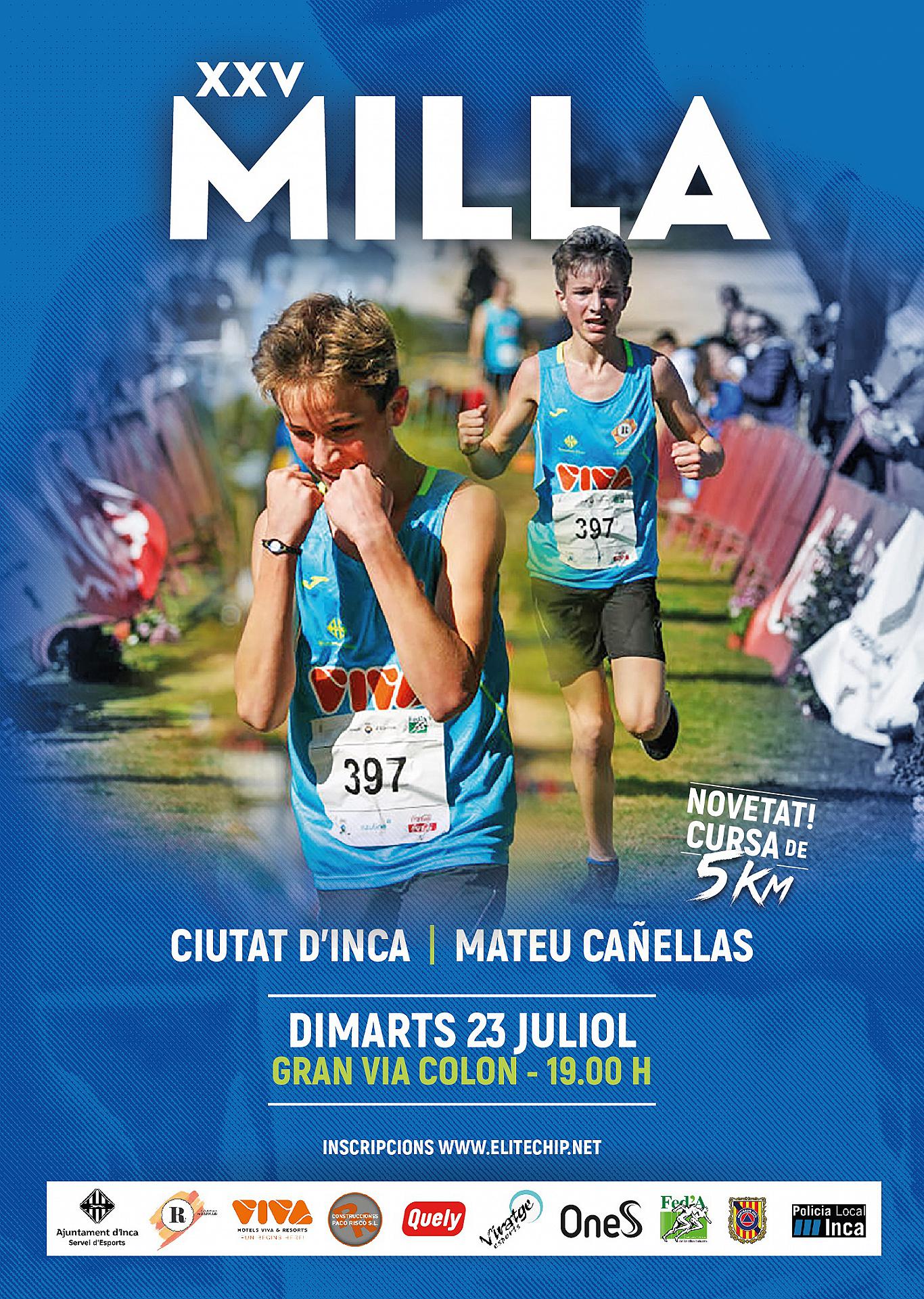 El C.A. Es Raiguer i l'Ajuntament d'Inca organitzen la XXV Milla CIUTAT D'INCA Mateu Cañellas, que tindrà lloc el proper dijous 23 de Juliol, a les 19.00 hores, al circuit urbà de Gran Via Colon.