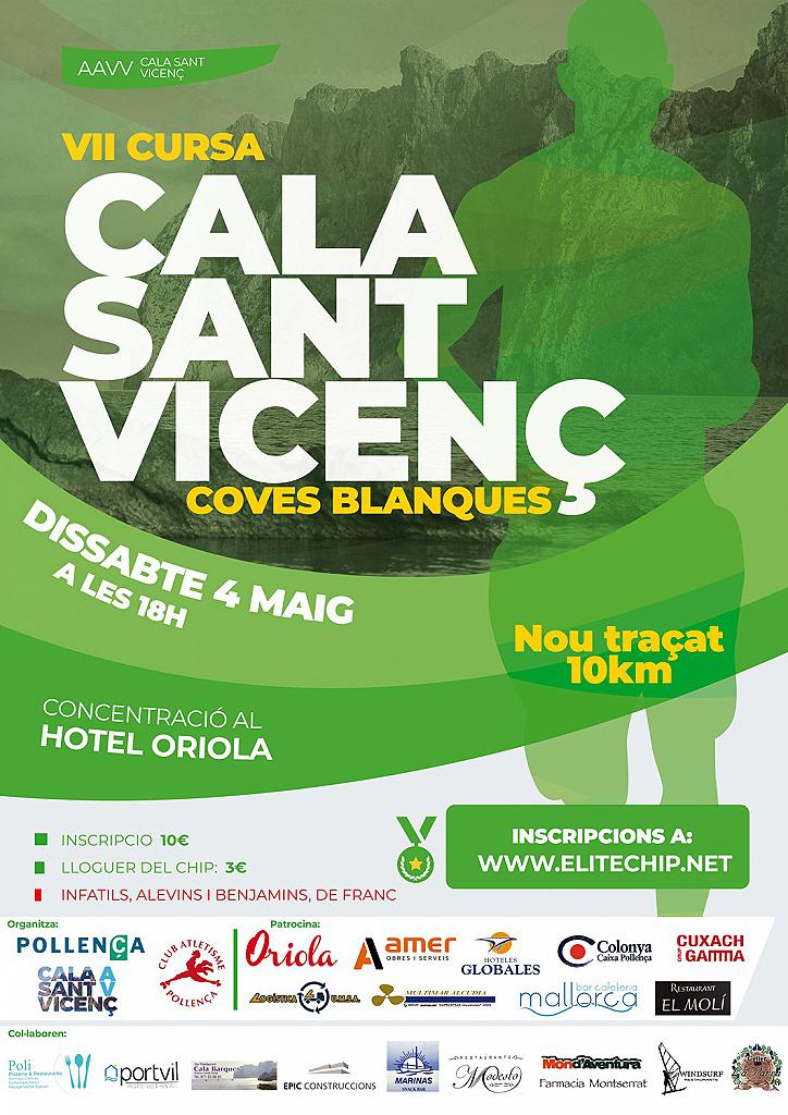 - La VII Cursa Popular Ca Sant Vicenç – Coves Blanques, organitzada per l 'Ajuntament de Pollença i l 'Associació de veïns de la Cala Sant Vicenç i que compte amb la col.laboració del Club Atletisme Pollença i patrocinadors, tindrà lloc el proper dissabte dia 4 de maig a les 18,00h, amb sortida des de el Carrer Torrent de Can Botana, Hostal Oriola, i arribada al mateix lloc.