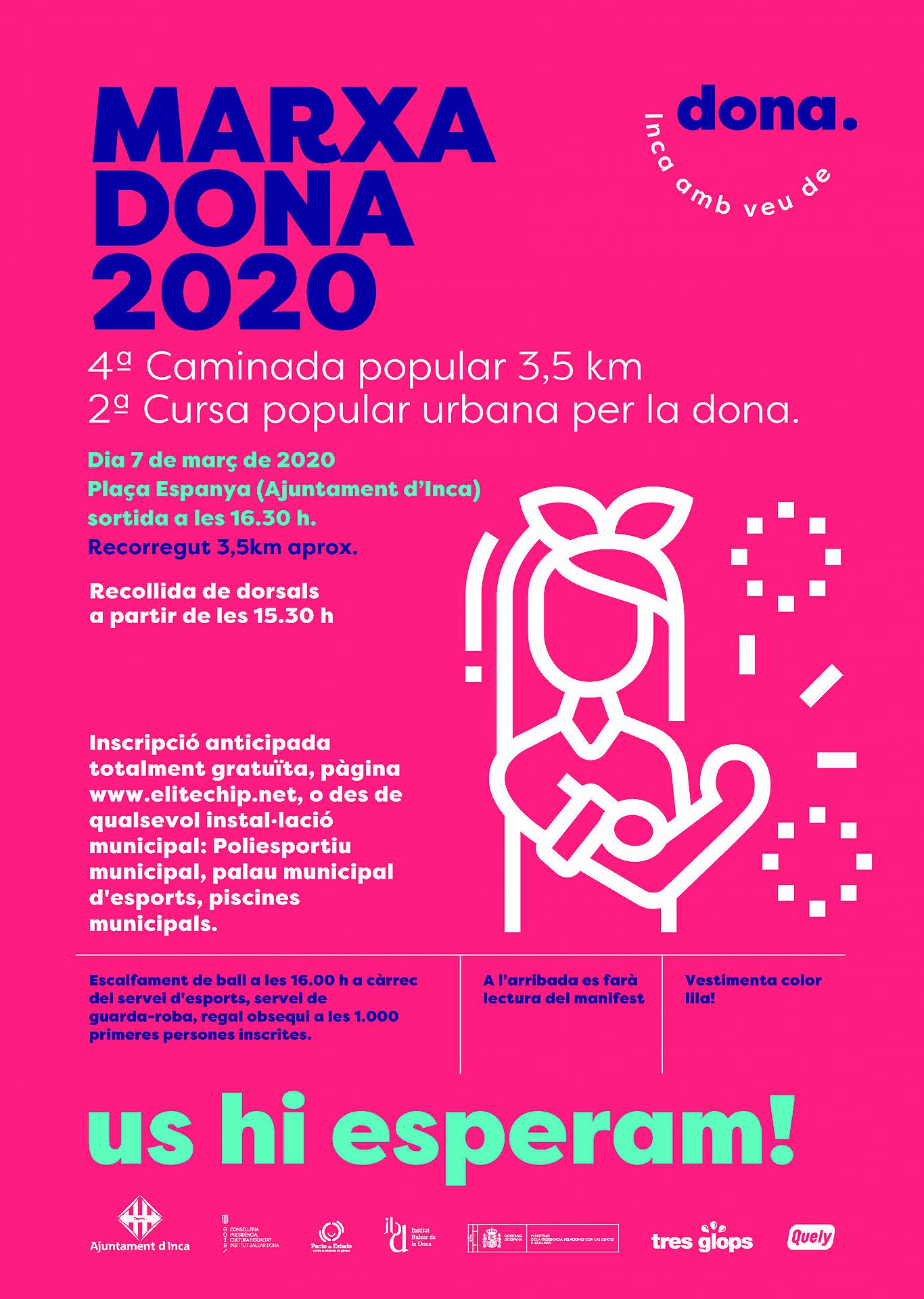 Art. 1. L'Ajuntament d'Inca, concretament el Servei d'Esports i l'Àrea d'Igualtat Espai Dona, organitzen la 4 a MARXA PER LA DONA i 2ª Cursa , el 7 de març de 2020, amb sortida i arribada a la plaça d'Espanya.