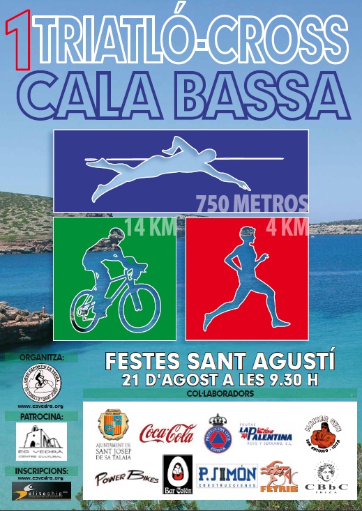 - Las distancias del I Triatlón Cala Bassa Festes de Sant Agusti serán de 750m de natación, 13km bicicleta de montaña y 4km carrera a pie.